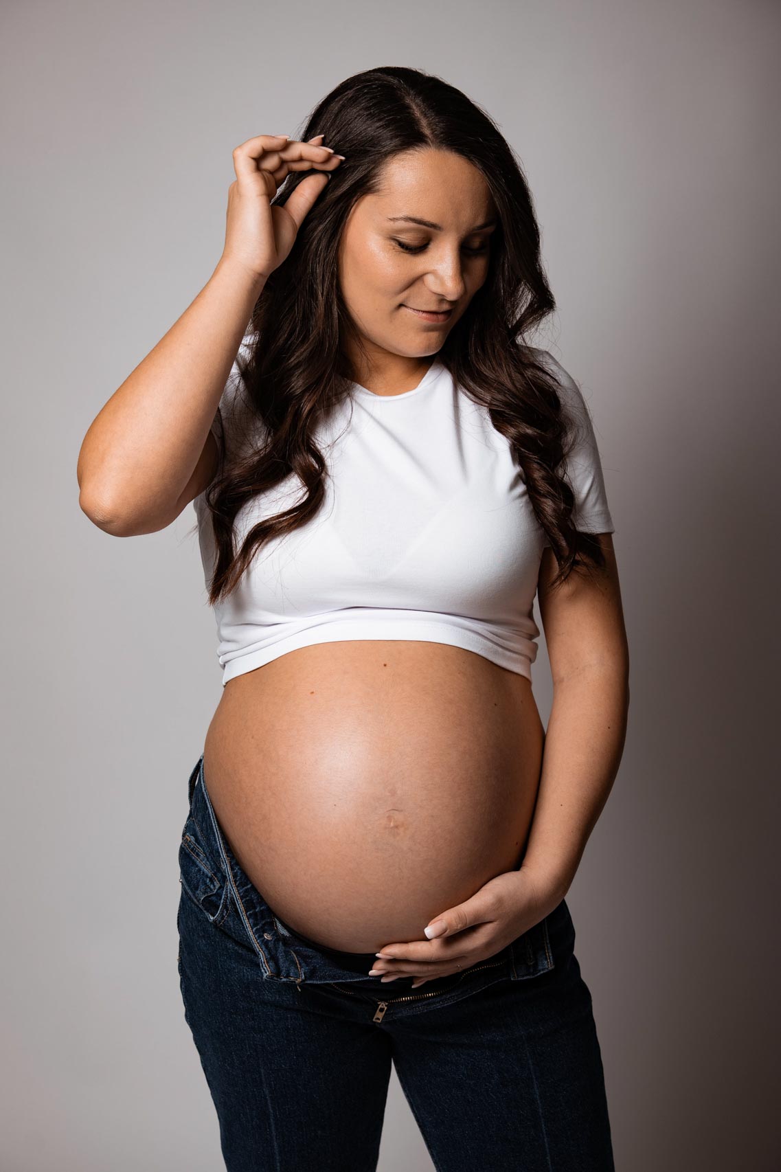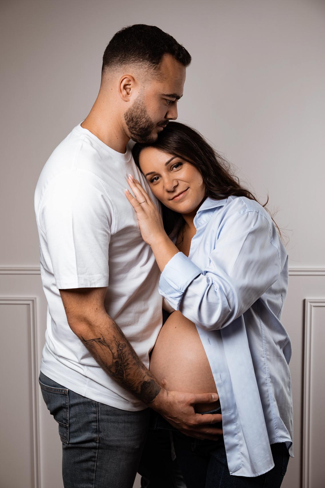 Une séance grossesse dans l'intimité du studio